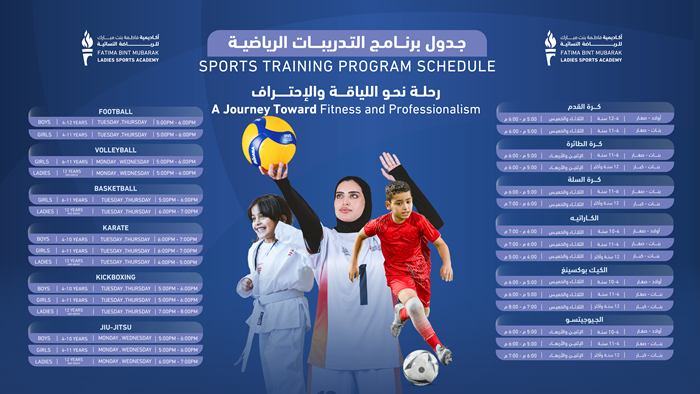 Fatima Bint Mubarak Academy Ladies Sports Academy invites you to join the Sports Training Program.