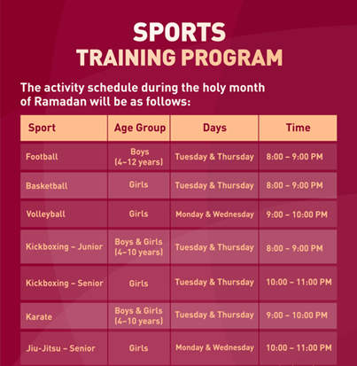 Fatima Bint Mubarak Academy Ladies Sports Academy invites you to join the Sports Training Program.