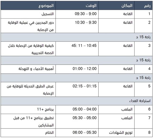 :في ورشه الوقاية من الاصابات الرياضيه سوف يتم